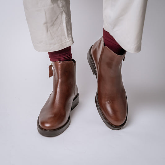 BOTA CORTA PUNTA CUADRADA BICOLOR LUSTRE 23-I CARAMELLO