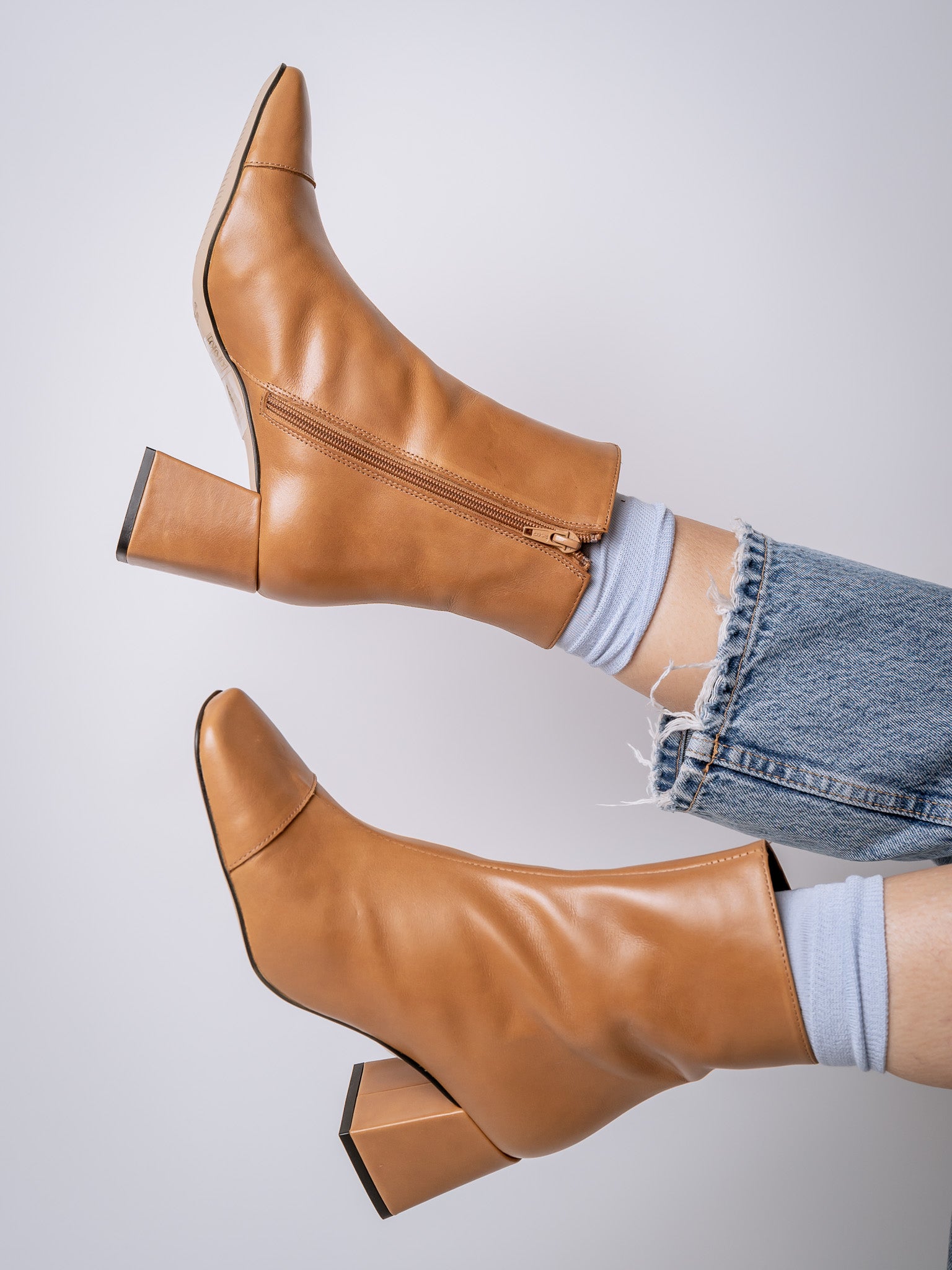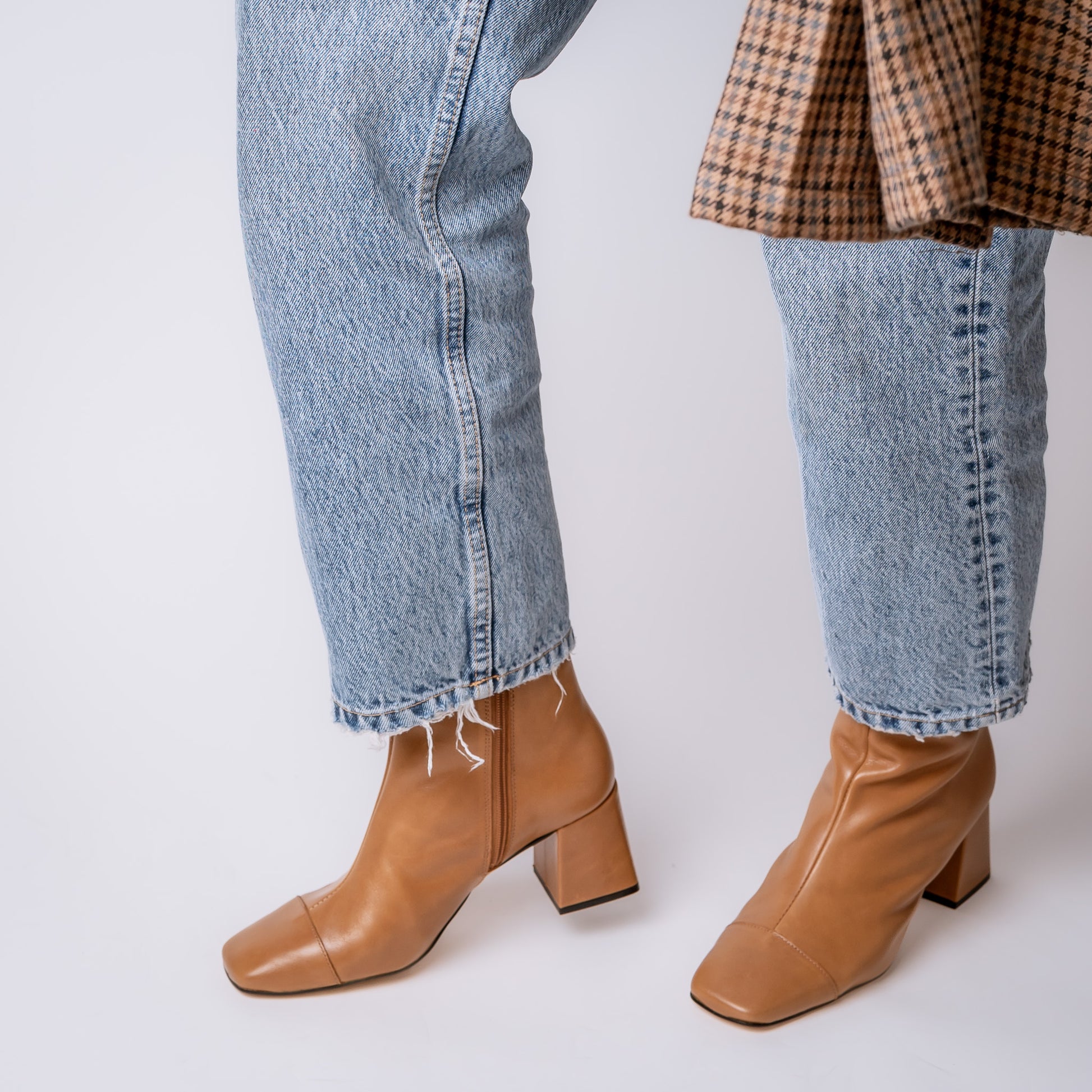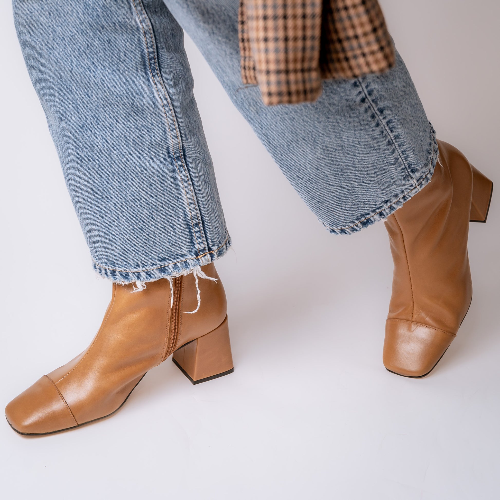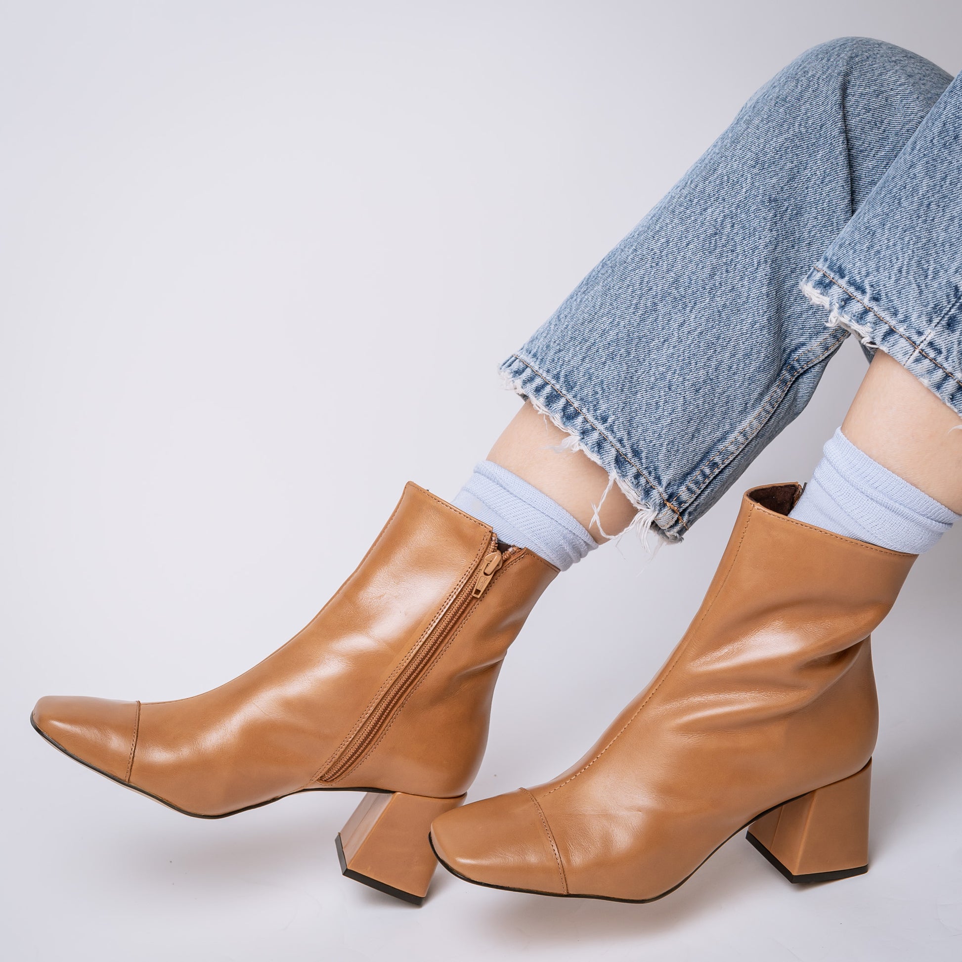 BOTA CORTA PUNTA CUADRADA BICOLOR LUSTRE 23-I CARAMELLO