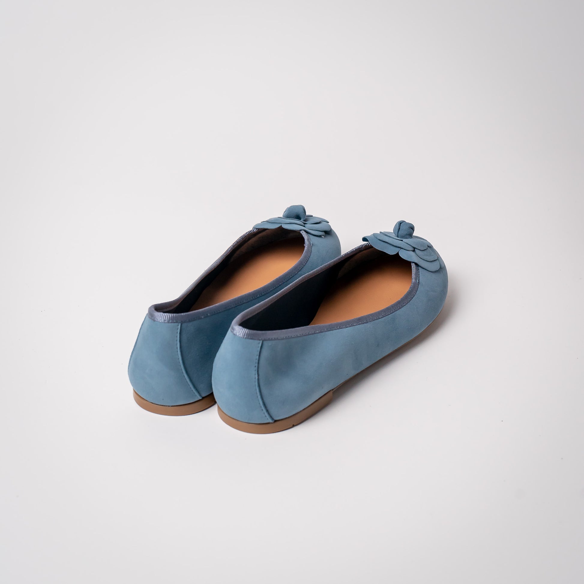 Bailarina clásica, con puntera redonda, de gamuza color celeste. Romántica y elegante con un toque especial y chic para elevar todos tus looks. Taco plano, forro interio cuero. La puedes usar en cualquier ocasión tanto de día como de noche. Horma normal, suela goma antideslizante.